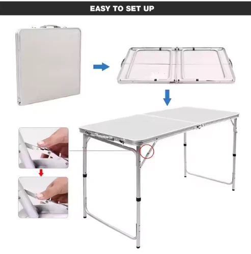 Itheyibhile ephathekayo ye-aluminium ye-aluminium, isebenzisa ukusetyenziswa kwe-hindoor, ngaphandle kwetafile yekhemini, etafileni kunye nethekheji yeKhithi yeKhithi, eLovene, i-RV ngaphandle kokuloba.