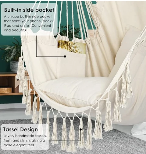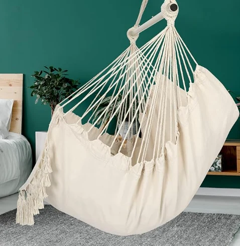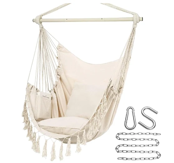Ukuthunga i-parachute ye-hammock ye-hammock.eilling ichithe ngalo naliphi na ixesha, naphi na. Fumana nje isebe, i-beam okanye isakhelo se-hammock, isitulo esikhulu se-swing ngaphandle okanye ngaphakathi Ilungele ukusetyenziswa kumagumbi okulala, njengegumbi lokuhombisa, iibhalconi, iintendelezo, kunye neegadi. Ukuba ufuna imbuyekezo, musa ukuyisusa ithegi evela kwisitulo seSwing
